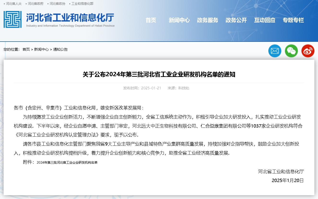 2025年1月21日,河北省工業(yè)和信息化廳發(fā)布了《關于公布2024年第三批河北省工業(yè)企業(yè)研發(fā)機構名單的通知》。經(jīng)主管部門審定,河北子曰機械設備有限公司作為企業(yè)研發(fā)機構符合《...